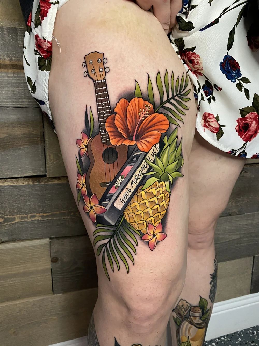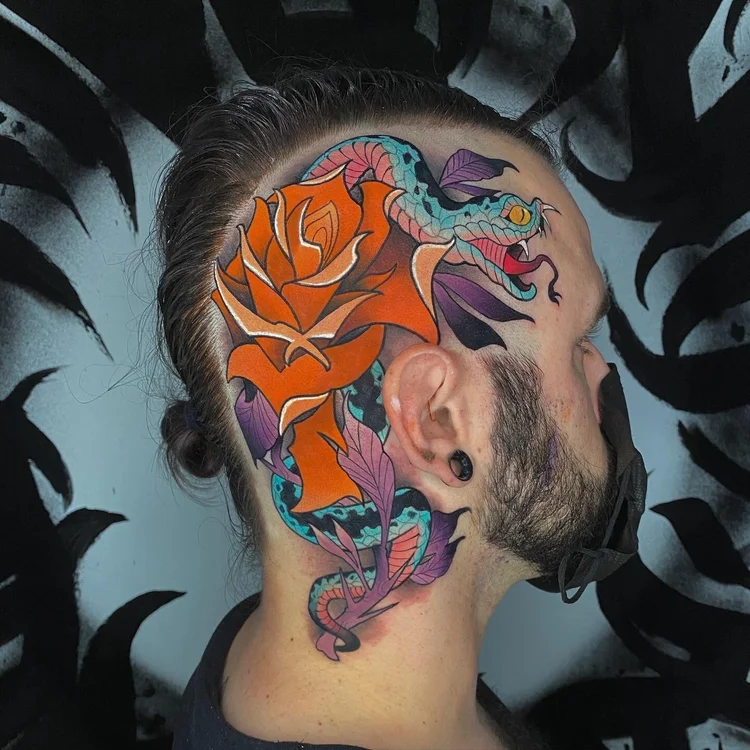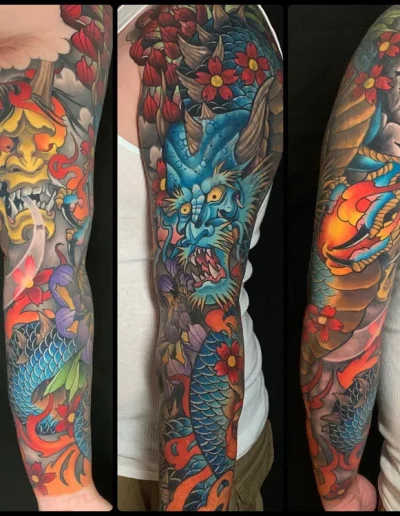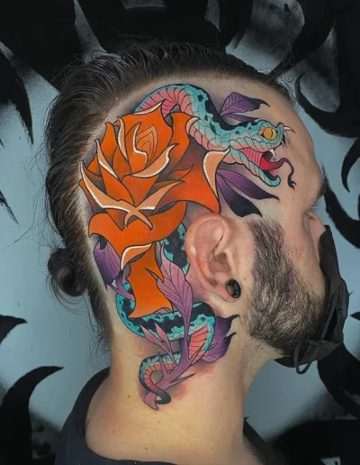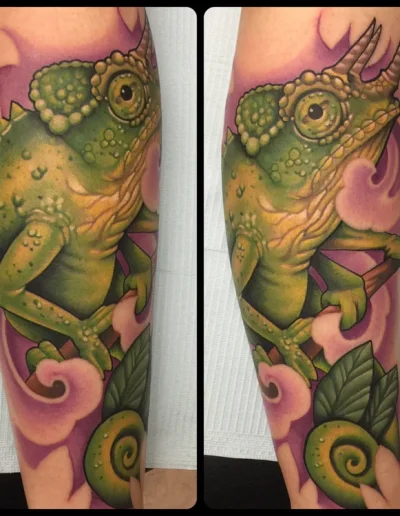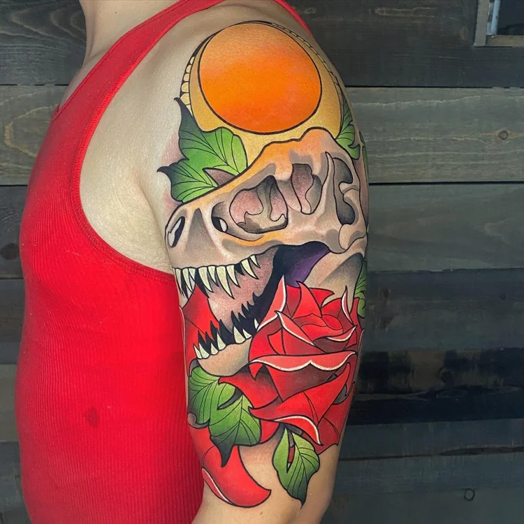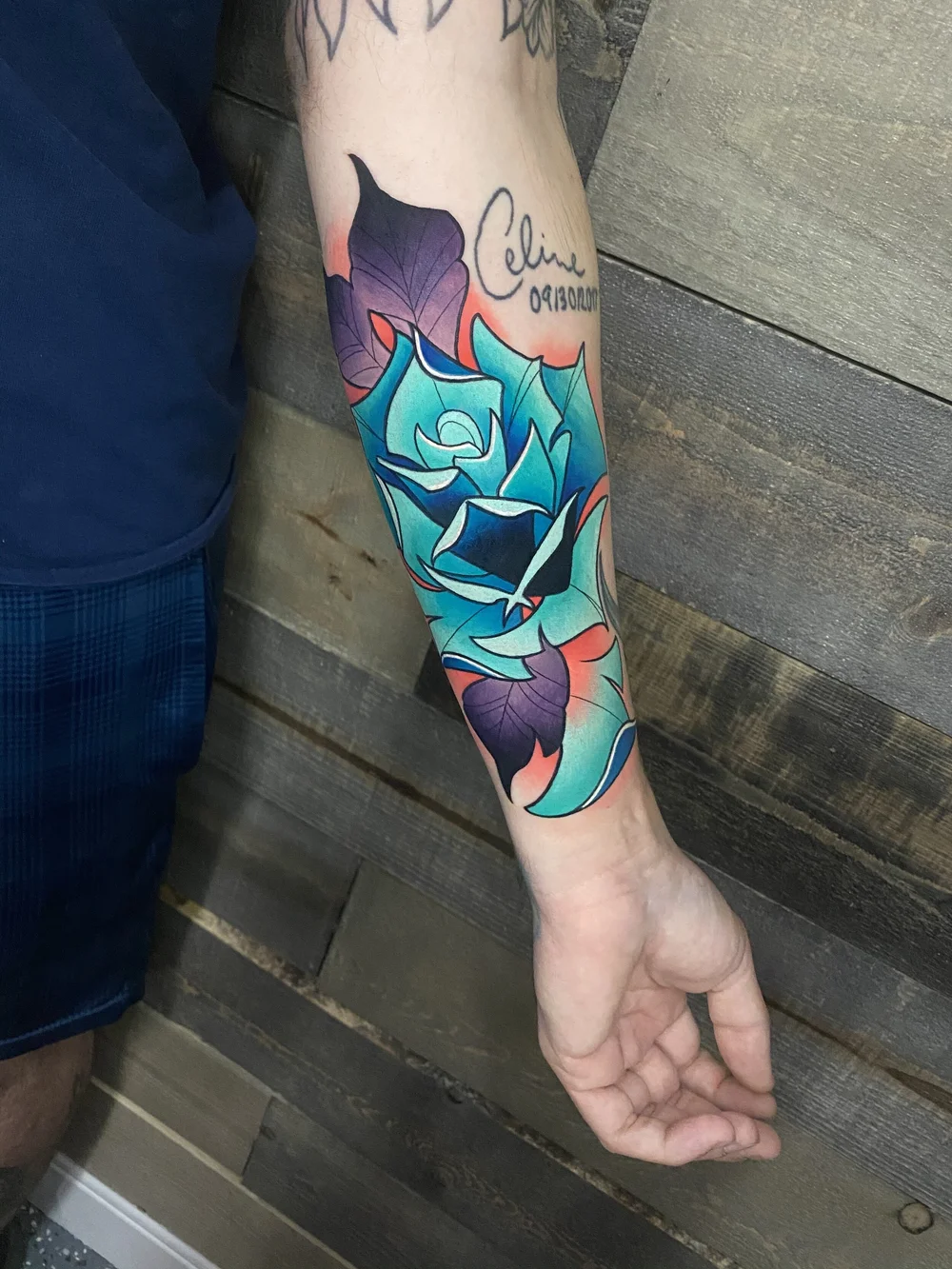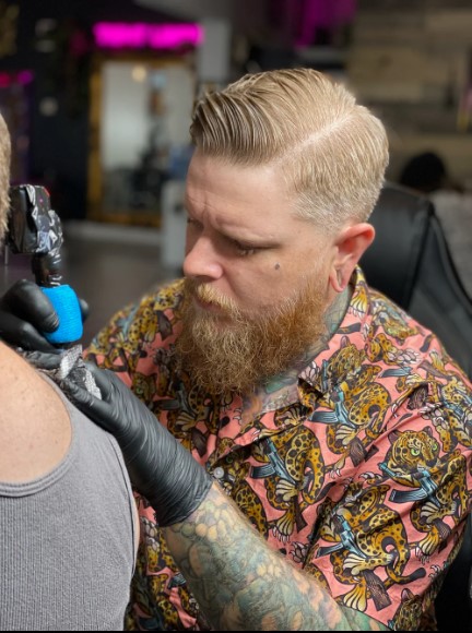 What really gets me excited? Skulls, flowers, and animals—especially pets and Florida wildlife. There’s something special about capturing the personality of someone’s beloved pet or the wild beauty of our local fauna in ink. I love working with bold lines, vibrant colors, and creating pieces that have that perfect balance of playful and striking.
