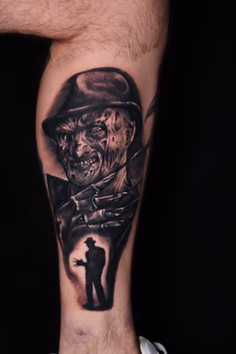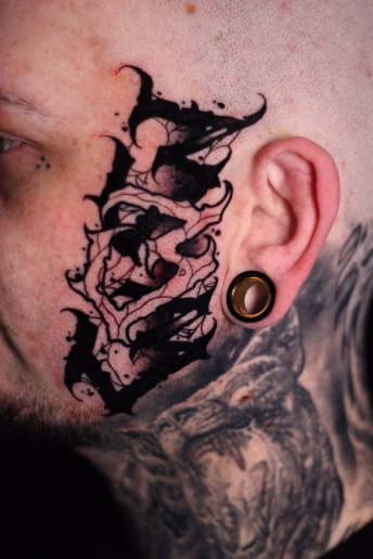 My style is heavily influenced by skate culture, graffiti, and calligraphy—three art forms that emphasize movement, flow, and impact. I create tattoos that are meant to be bold, graphic, and easily recognizable from across the room. Whether it’s custom lettering with calligraphic flair, graphic illustrative work, or designs that pull from street art aesthetics, my goal is always to create something that makes a statement.